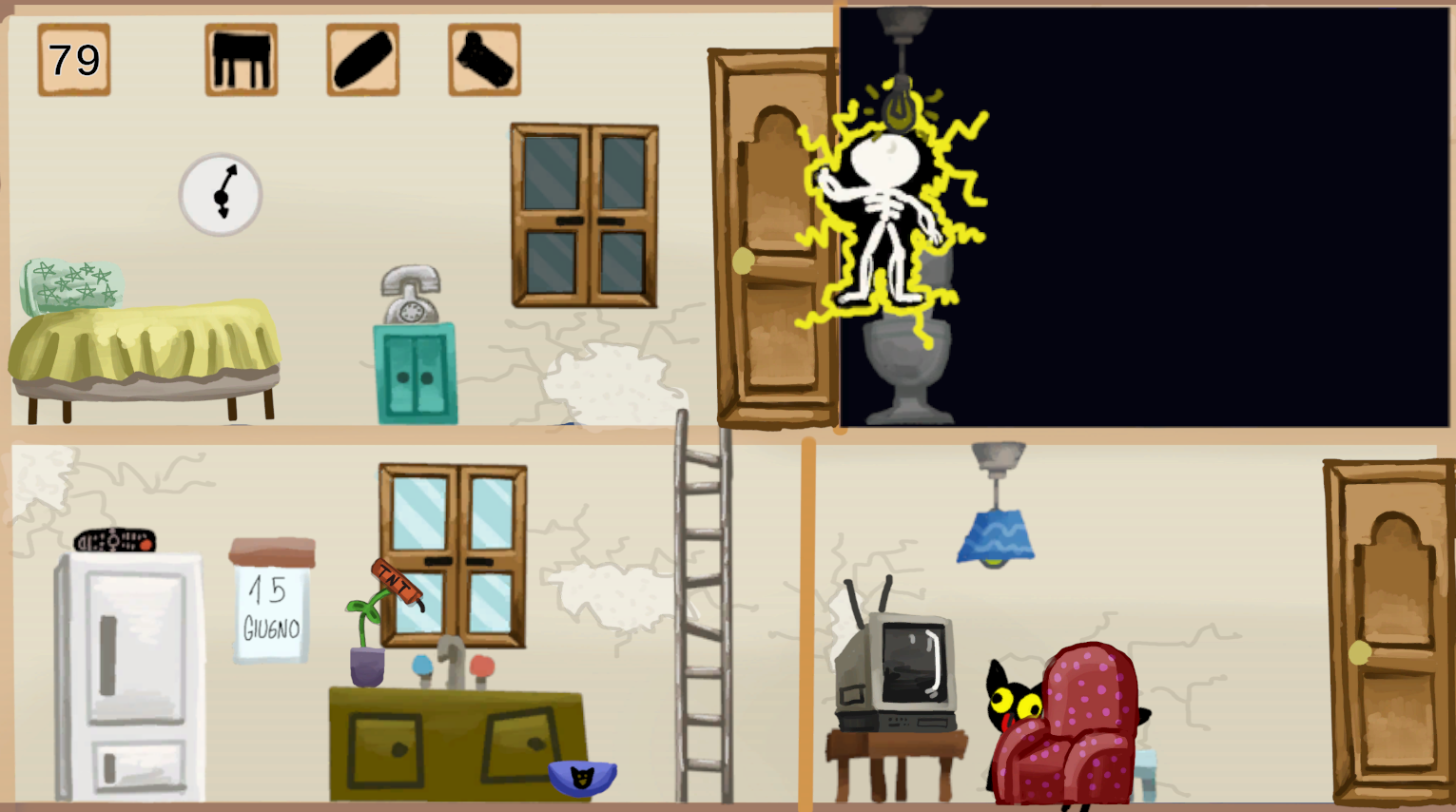 In this game, you play as Ciccio. Having seen many horror films, Ciccio is always ready to complain about the protagonists’ stupid mistakes. It is up to you to make him experience as many of these mistakes as possible first-hand.